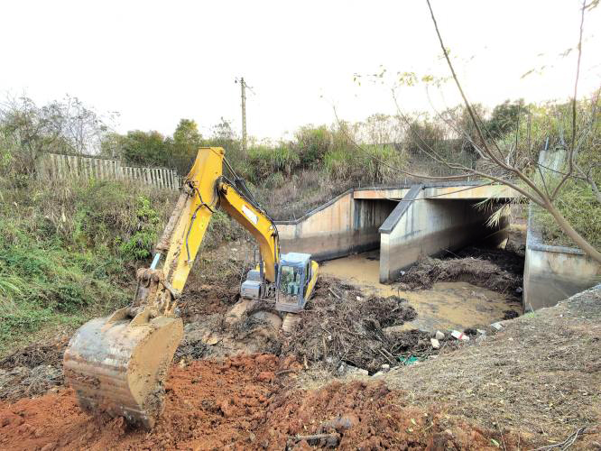 在龍溪橋灌區(qū)的渠道旁,挖掘機鐵臂揮舞,將淤積的泥土和雜物連根挖起;運輸車輛來回穿梭,把清理出的淤泥及時轉(zhuǎn)運;身著迷彩服或工裝的工作人員手持鋤頭、鐵鍬、鐮刀,在渠道內(nèi)外坡?lián)]汗如雨——有的砍除叢生的灌木雜草,有的疏浚堵塞的涵洞,有的平整渠道邊坡。從長渠到涵洞,從機械轟鳴到人工協(xié)作,處處呈現(xiàn)出干群同心、攻堅克難的生動場景。管理所全員上陣,分工明確,協(xié)同高效,確保每一段渠道都清理到位。