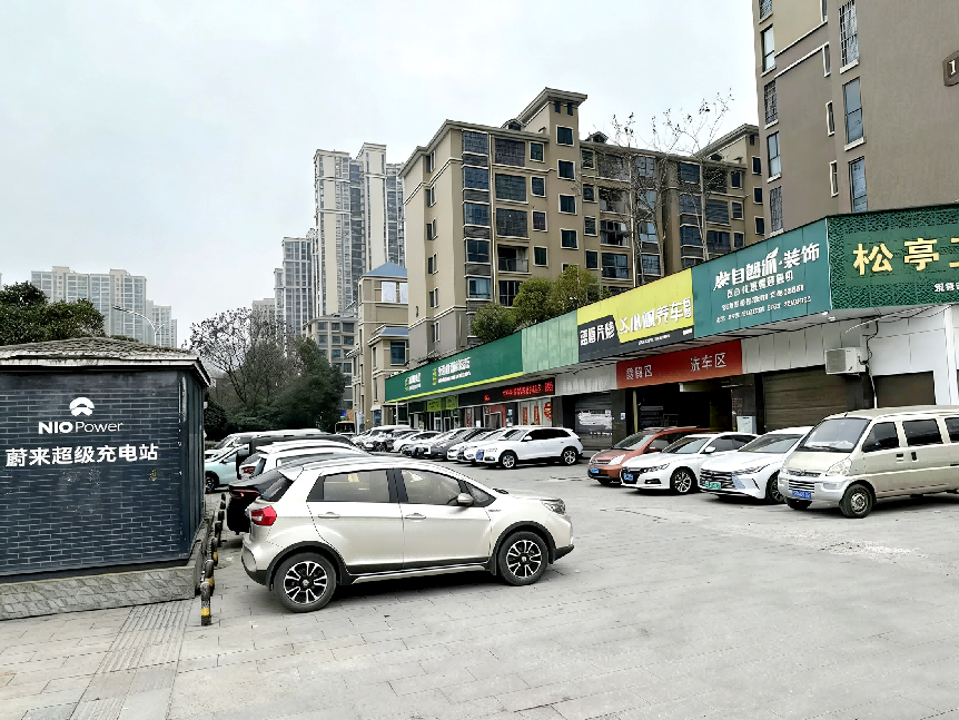 ▲松亭村充電站內(nèi)汽車整齊排列